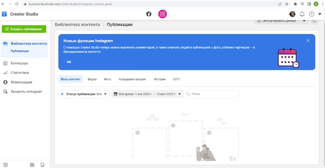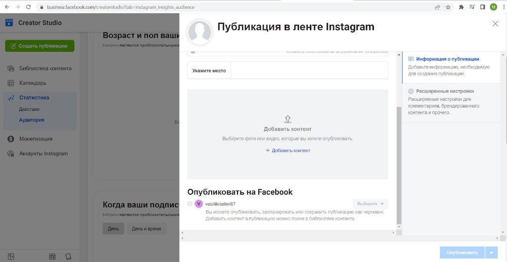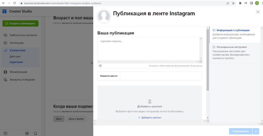 Как сделать публикацию в Instagram через Facebook Creator Studio?